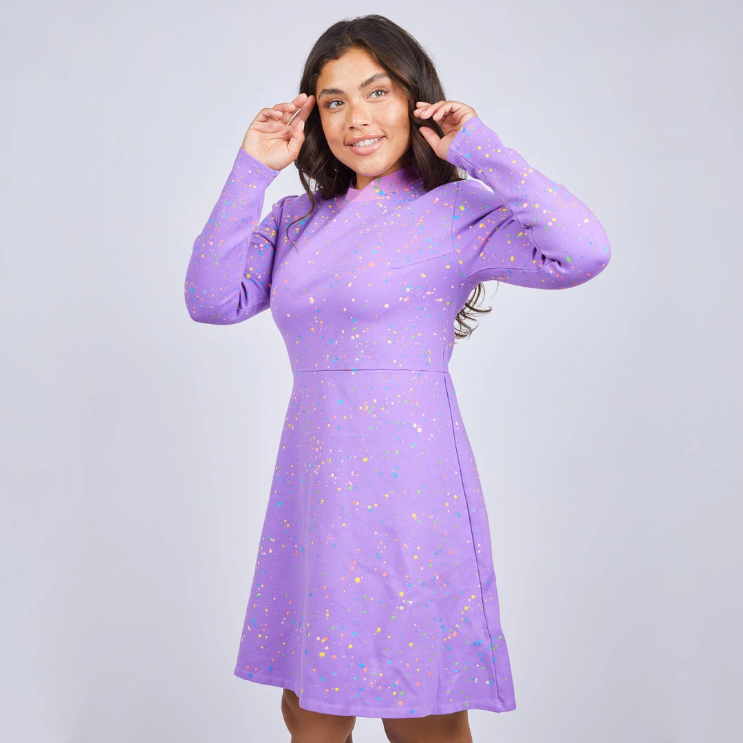 Ever looking to dress up and look cute but always struggling to find the right jacket to go with your cute dress outfit? Search no more! This dress is as cozy as it is stylish. Features a mock neck and A line style skirt with a top that’s fitted in all of the right places. An easy choice and perfect for those chilly California evenings.