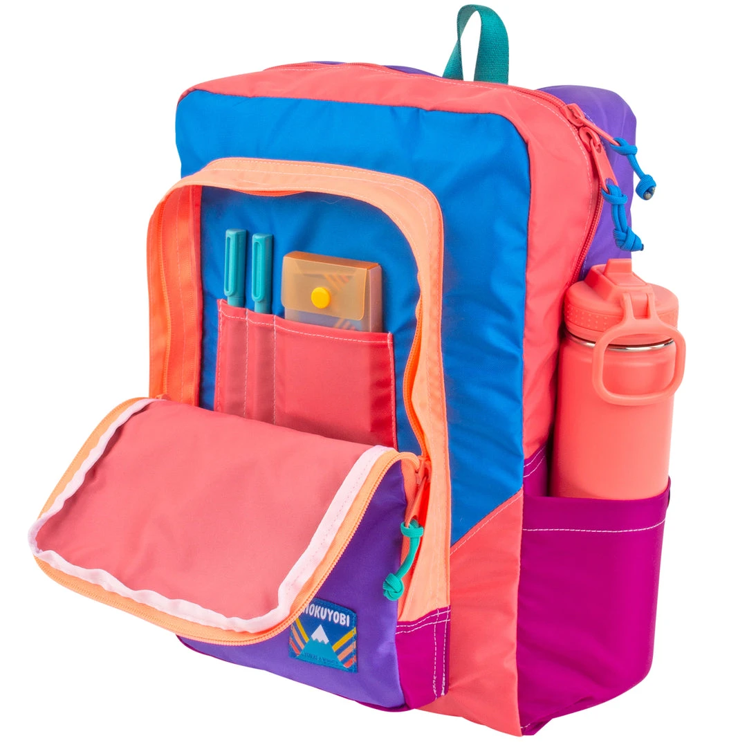 The Flyer Pack features a large front pocket with pen slots & card pocket, a main compartment with padded sleeve that fits up to a 16″ laptop, lining zipper pocket, 3D water bottle side pockets, a suitcase handle sleeve for easy travel, adjustable padded back straps with no fail strap construction, and paracord pulls for easy opening!