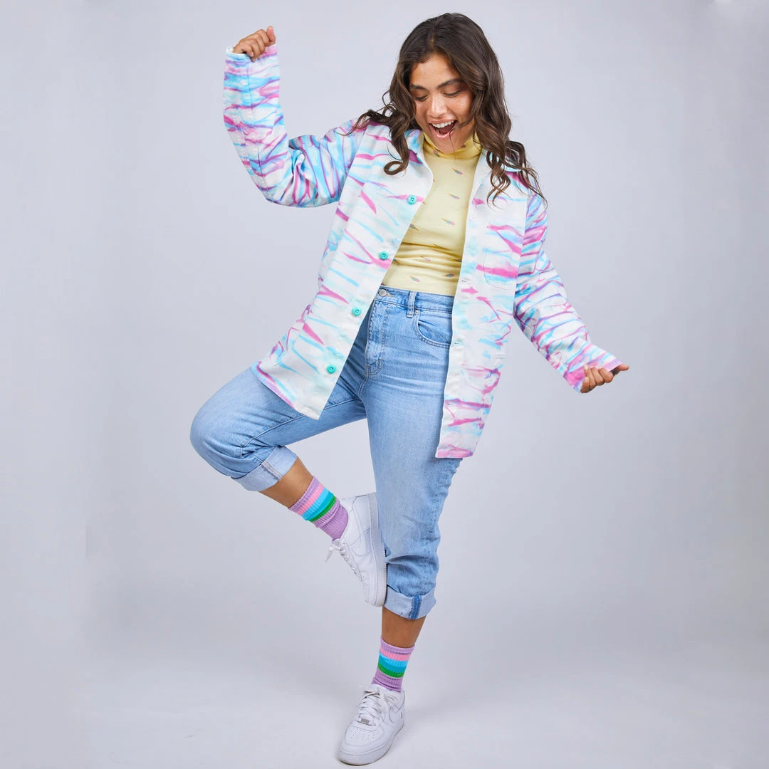 Get to work! You’ll be ready for anything in this light layer that goes with any look! Coordinating candy buttons add a fun pop to this style. Features two front pockets and a chest pocket. Need to get your sleeves out of the way? Features a wrist button to keep things tidy!