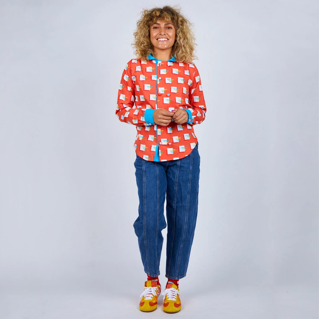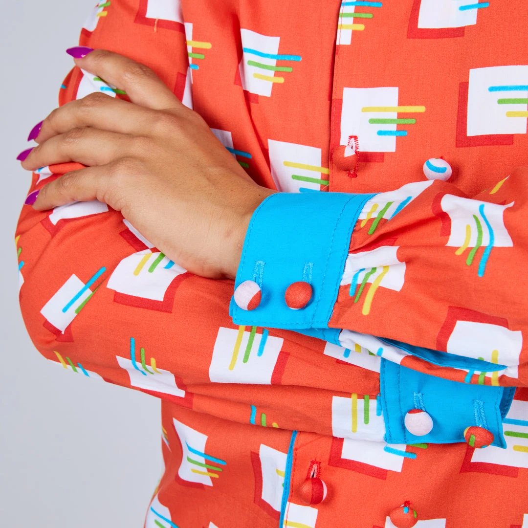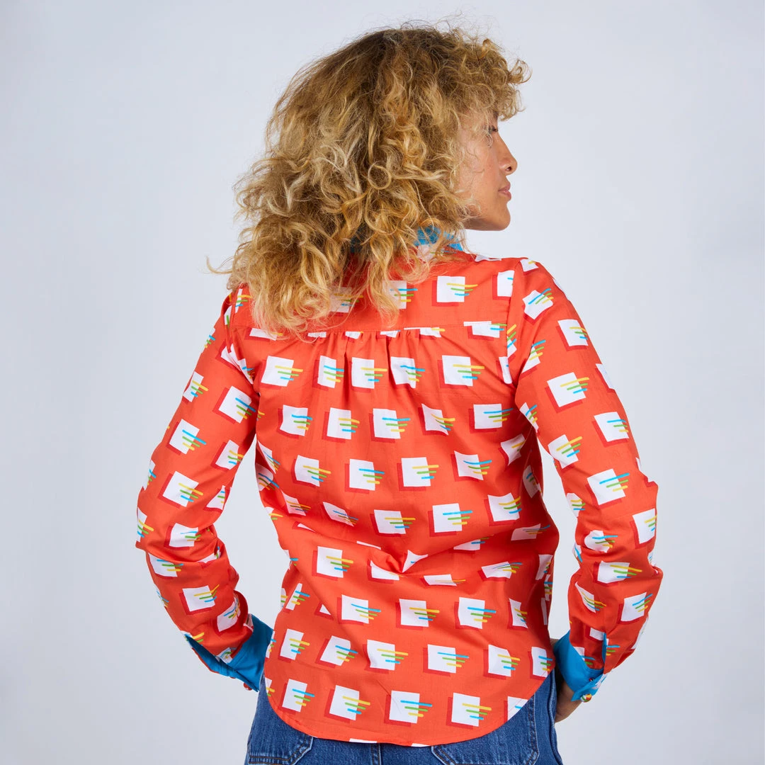 Choose your style with our new long sleeve button up blouse. Featuring a double breasted placket that functions both ways. Pick your look by choosing to contrast your placket or blend with the body color. This style is perfect for both dressy and casual affairs. Close it up with 3D fabric covered contrast buttons! Prepare to turn heads in this rad top!