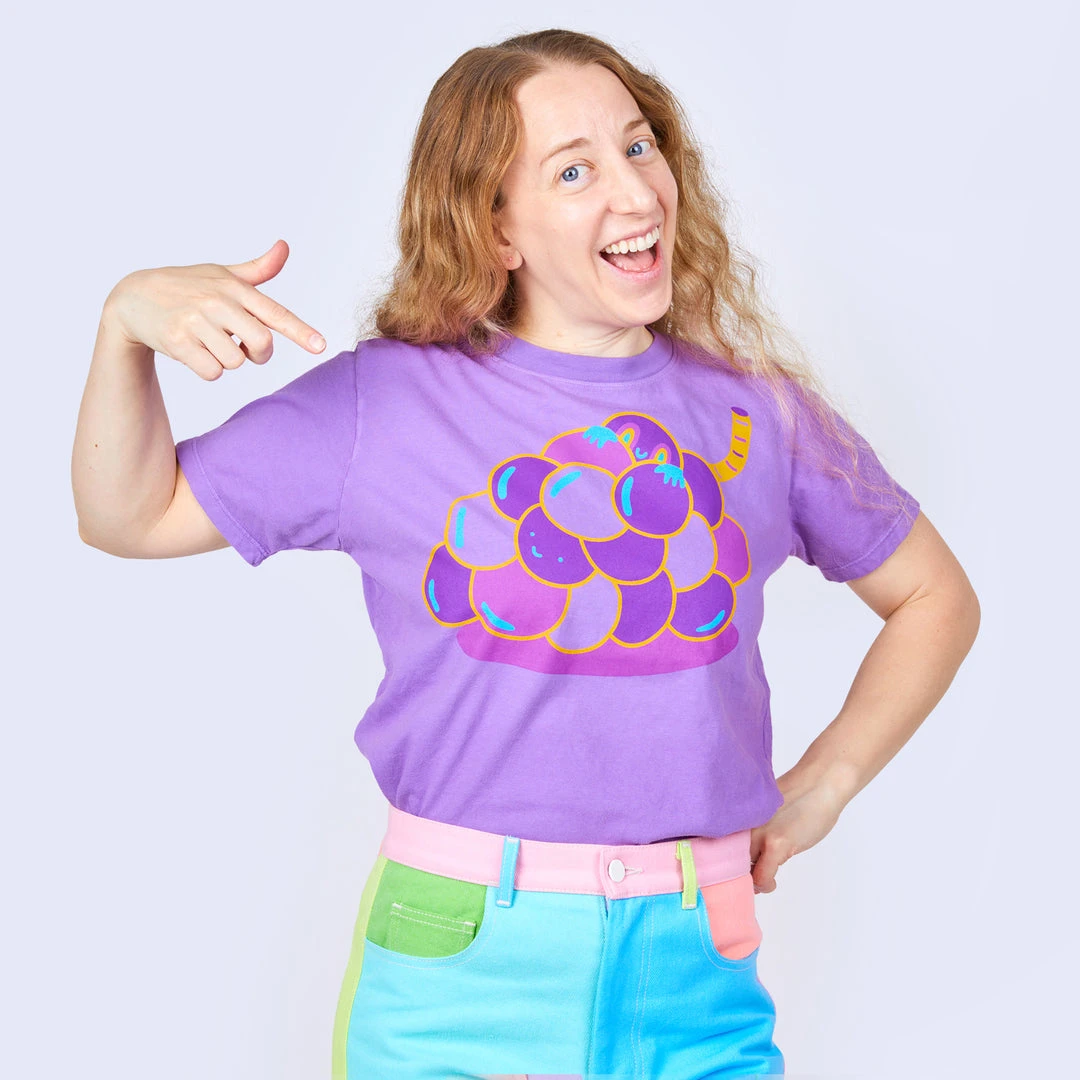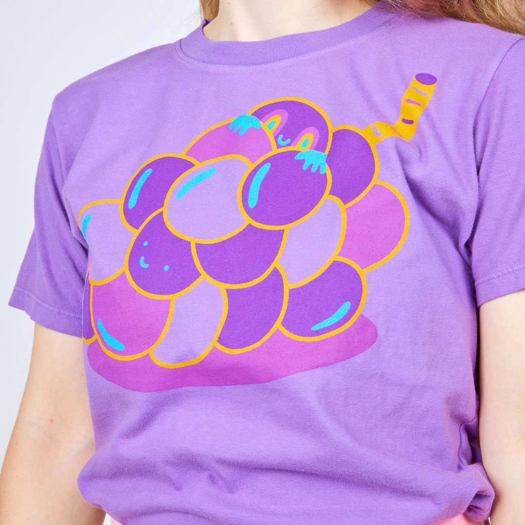This rad heavyweight tee has a screen printed design with a bunch of grapes that are bursting with so much life that they’re popping up to say hello!