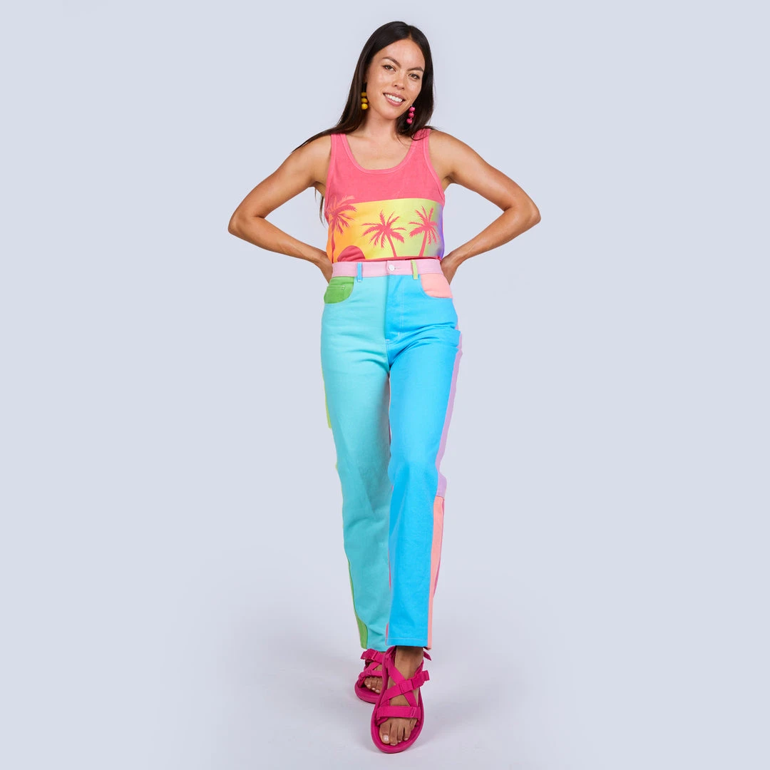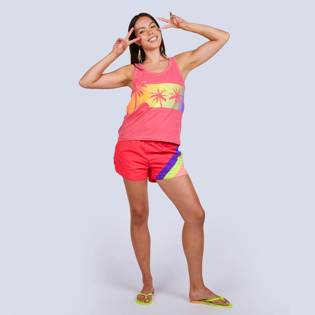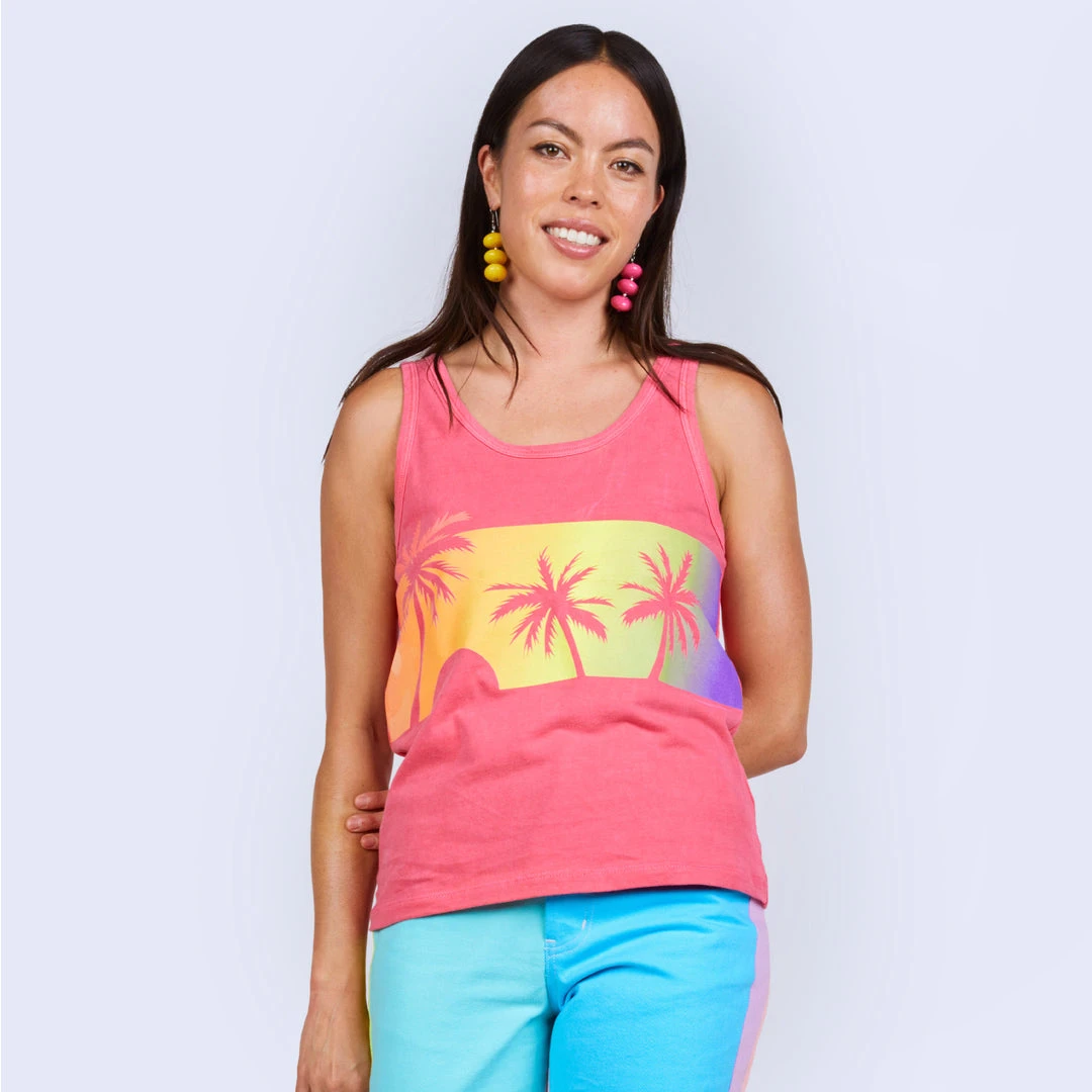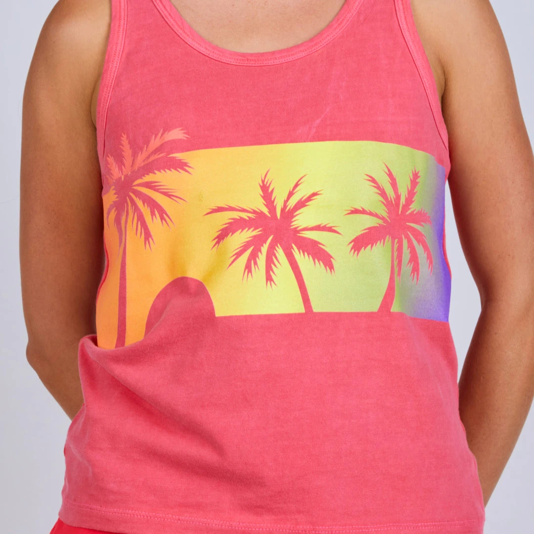 Get your retro vibes on in this rad heavyweight tank where sporty meets casual. Features perfect armhole coverage with thick self binding and a gradient band screen printed design.