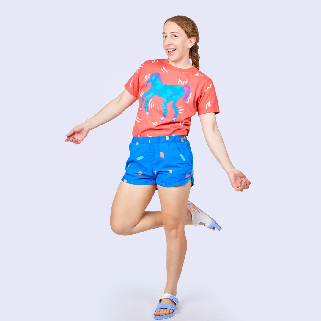 Of course, this rad heavyweight tee has a fun screen printed horse design with an exciting all over paint stamp design that will have people galloping towards you to check it out!