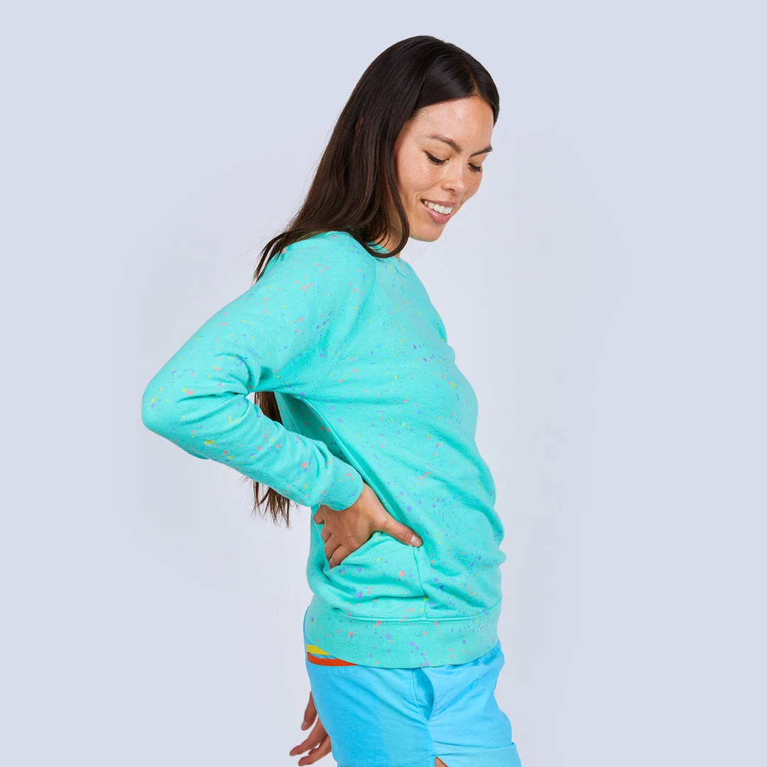 Looking for an easy layer no matter the season? You’ve come to the right place. This playful crew sweatshirt is super cozy and ready for action. Each sweatshirt is individually cut, sewn, dyed, and splatter painted with this fun palette to complement all of our other coordinating styles! Mix and match to perfection with all of our Paint Splatter products!