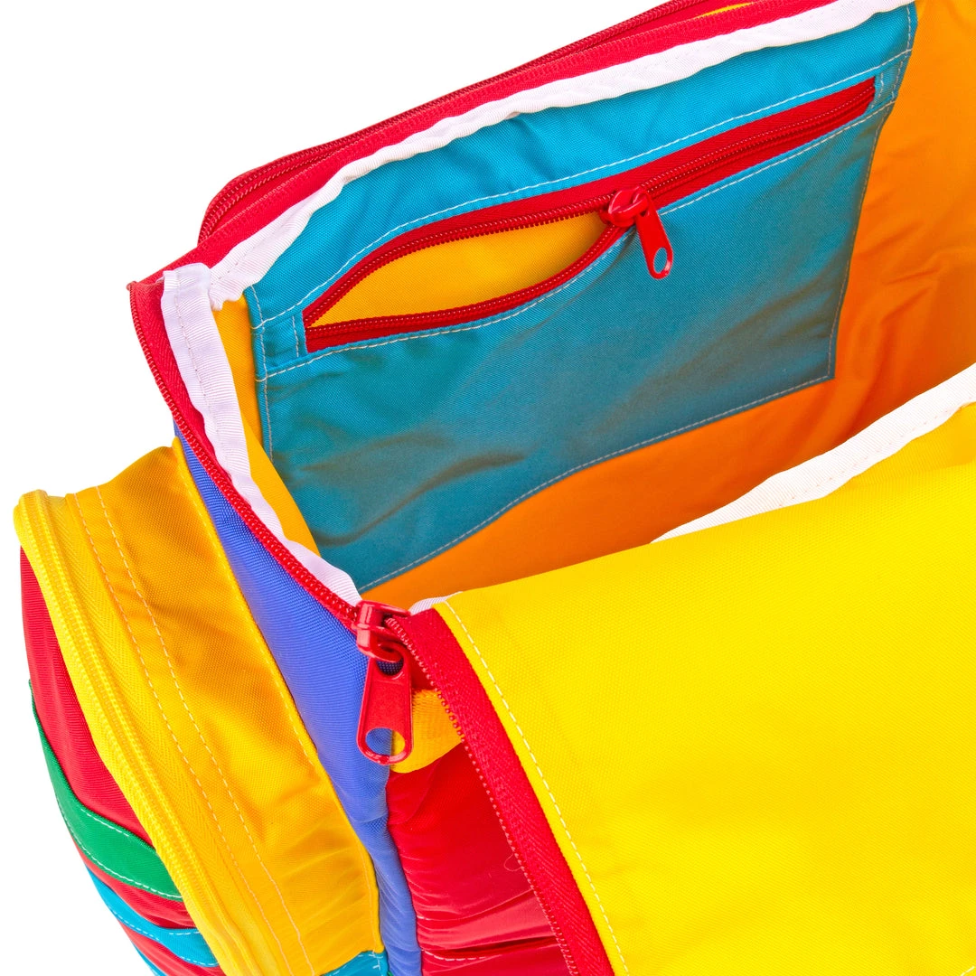 Features 4 separate front zip compartments, two side zip pockets perfect for water bottles or umbrellas and open flat pockets for small items. The padded laptop sleeve in the main compartment fits up to 17″ laptops. Interior zip pocket for stashing valuables. Back suitcase handle anchor for easy travel use, just slide on and go! Foam walls for added structure and insulation.