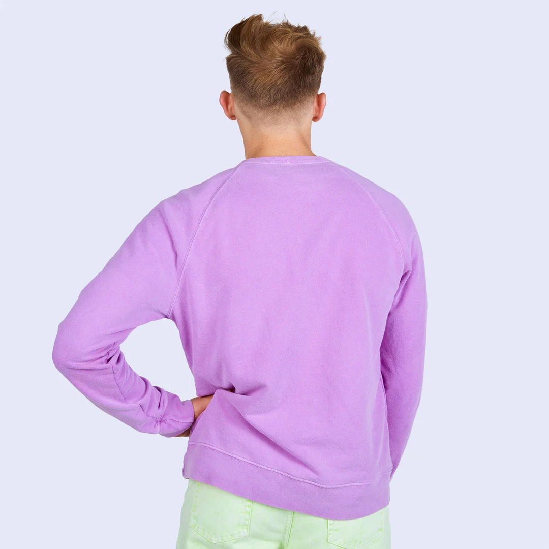 Looking for an easy layer no matter the season? You’ve come to the right place. This playful crew sweatshirt is super cozy and ready for action. Each sweatshirt is individually cut, sewn, dyed, and screen printed. This graphic has elements printed using SUPER PUFF ink for a fun texture!