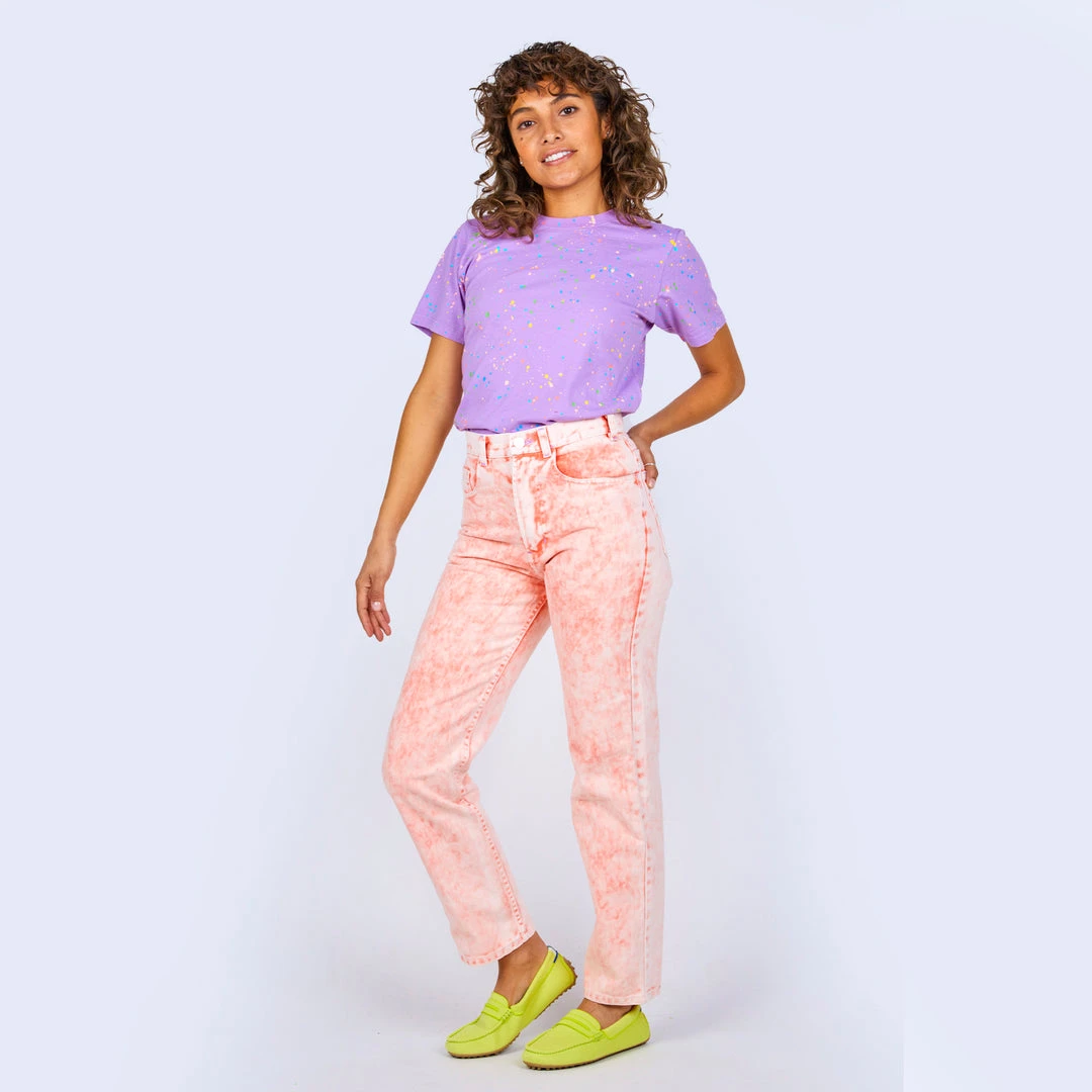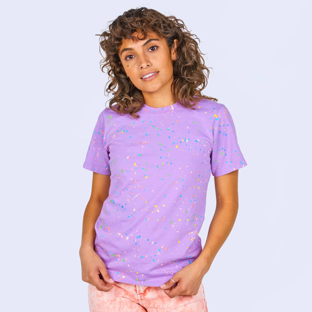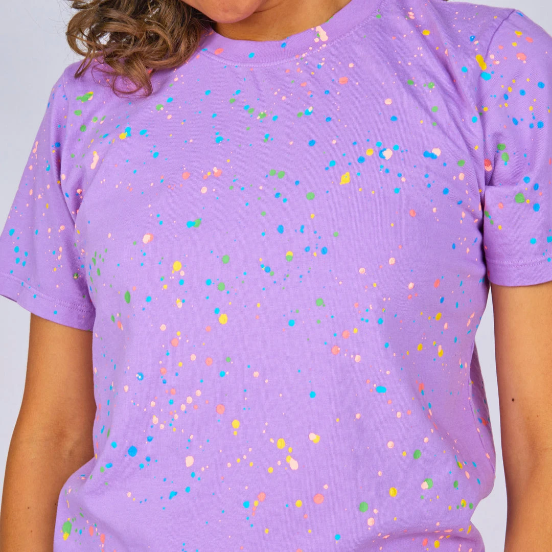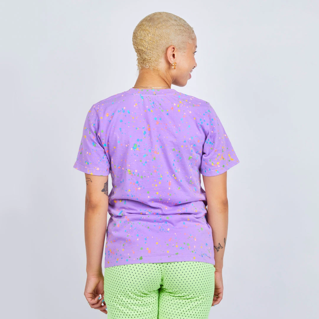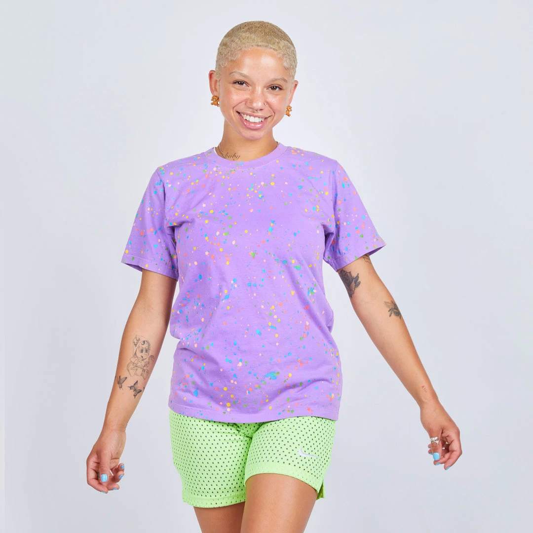 This rad heavyweight tee is splashed with a fun paint splatter! Each tee is individually cut, sewn, and painted so the design details of each will be a unique expression that’s just for you!