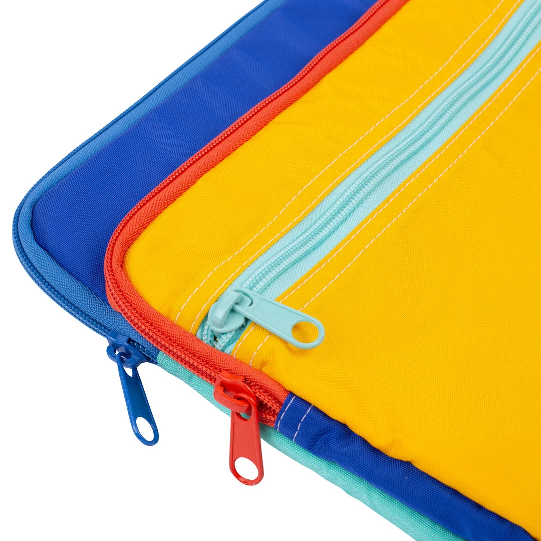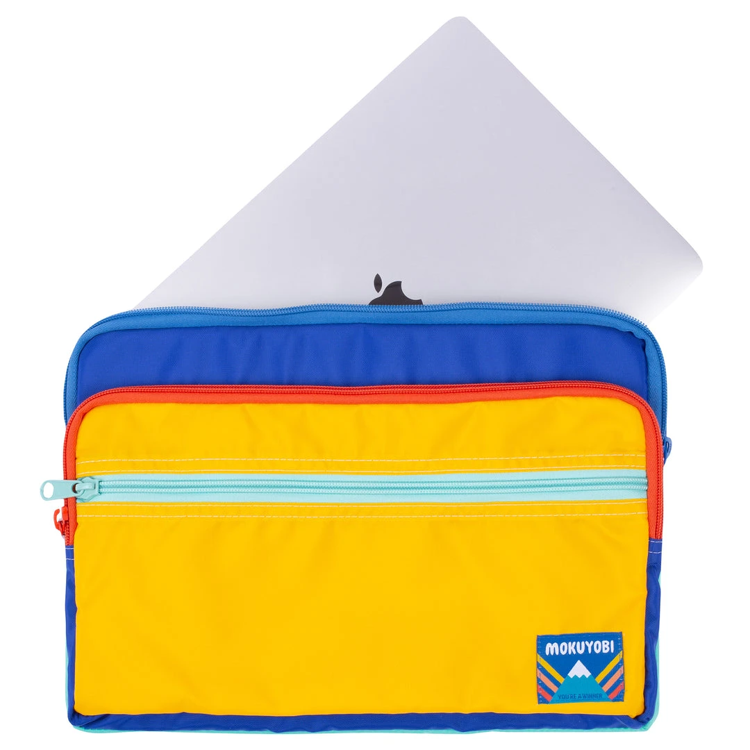 Features four total compartments including a front zip compartment for your USB, SD card, and other small items. Stash your charger cable and external drive in the middle zip compartment so you can keep it 100 with access to all of your files. The main compartment is sized to fit any generation 13″ MacBook Laptop. Take advantage of the back pocket for any loose papers or notes.