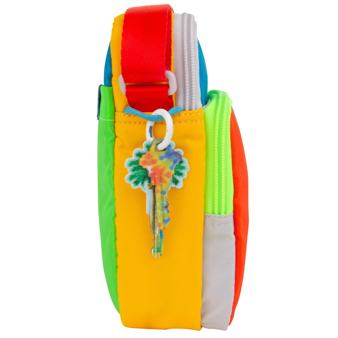 Features an adjustable nylon strap that extends to 55″, front zip pocket, front hidden pocket, main zipper compartment, and open back pocket. Utilize the double paracord side loops to hook on your keys or keychains.