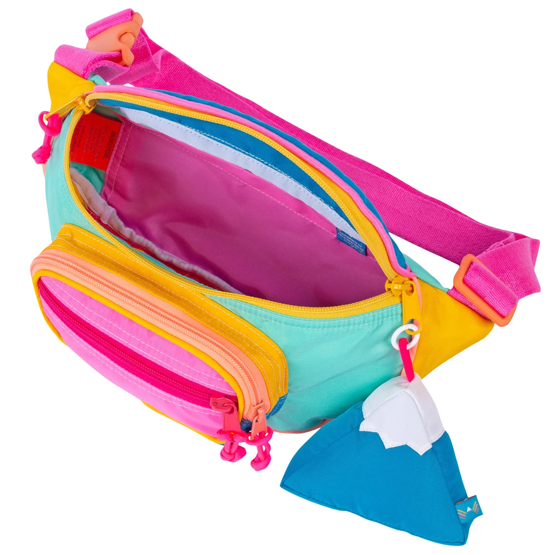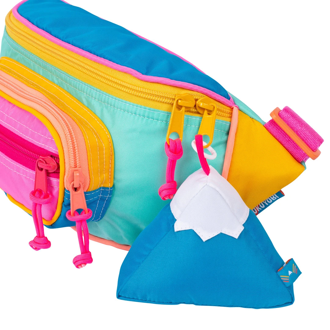 Features super soft nylon webbing, piping details, color buckle, a padded exterior for extra comfort and insulation, 3Â separate zipper compartments, and two additional pockets in the main compartment. Coordinating paracord pulls make opening this bag a cinch! Comes with a matching Mokuyobi Mountain plush keychain.