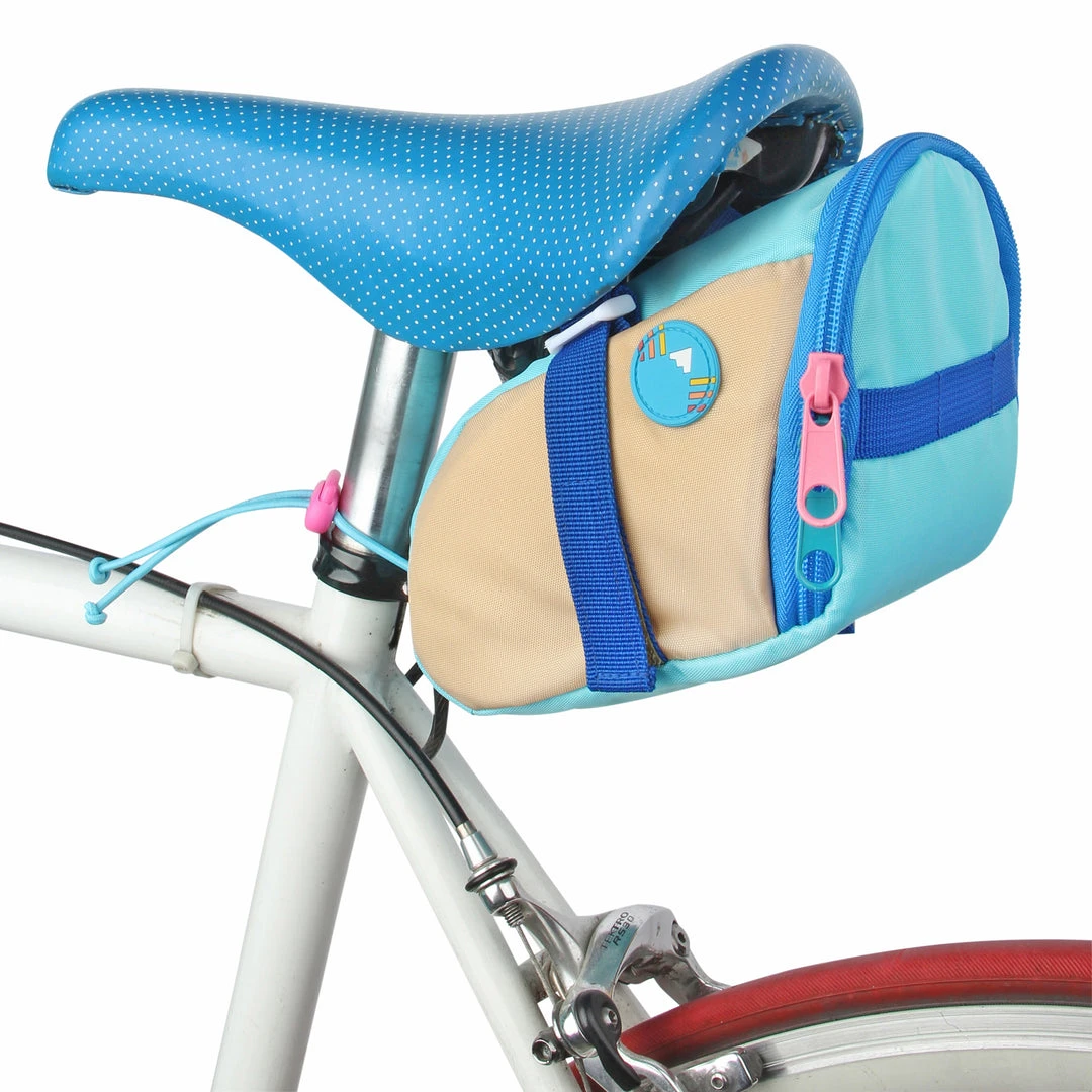 Designed to clip onto the underside of your bike seat- this bag is fully foam lined for insulation, shape conservation, and protection. Constructed with 100% coated nylon packcloth outer and lining. Features a color blocked body with main compartment and inside pocket. Front tacked webbing lets you easily clip on a back bike light. Adjustable straps with Velcro tips lets you secure the webbing in place. New elastic cord and toggle feature lets you secure the bag to your bike seat post for a smooth ride.