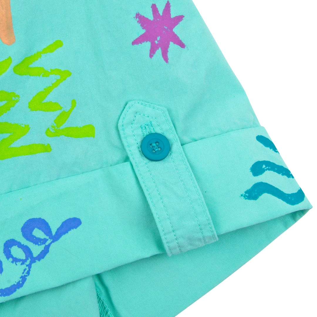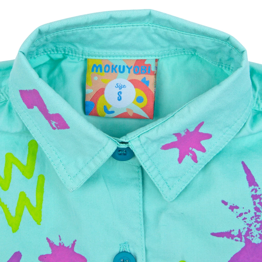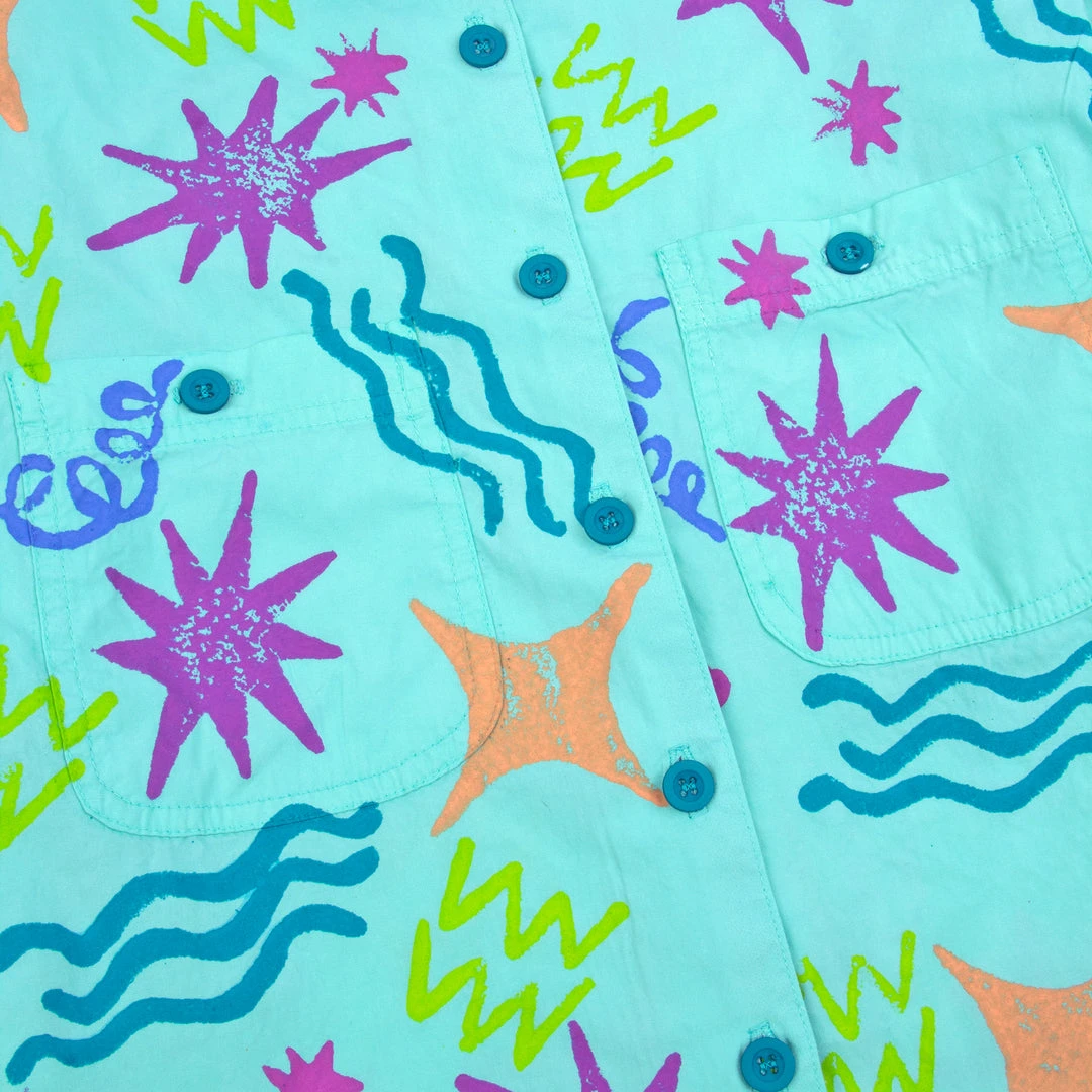 This rad top is a part of our Paint Process Collection and we stamped it with a bunch of wacky multi colored stamps! Each garment is individually cut, sewn, and stamped so the design details of each will be a unique expression that’s just for you!